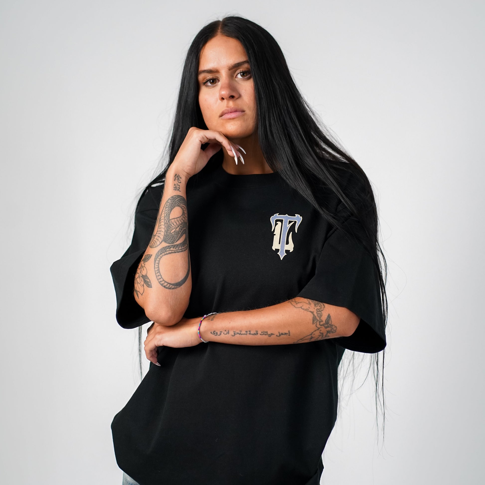 A small printed logo marks the chest, on the back, our signature tattoo-inspired traditional design speaks without needing words.